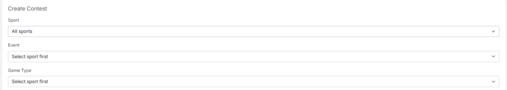 ℹ️ Event and Game Type are enabled after selecting a sport.
