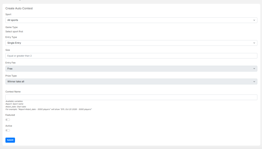 Auto Contests are templates that the system uses to automatically create contests for upcoming events.