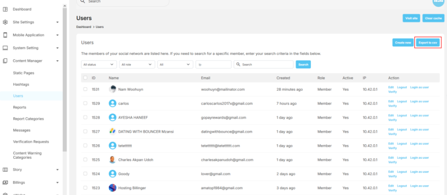 Export Users to CSV