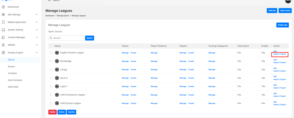 - Go to Dashboard → Sports → Choose a Sport (e.g. Soccer) → Manage Leagues