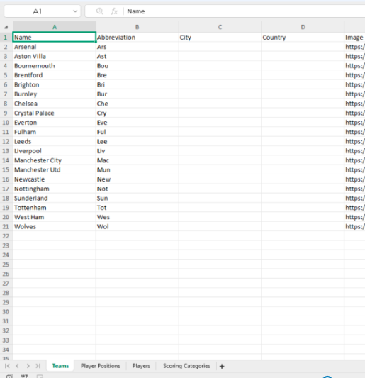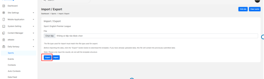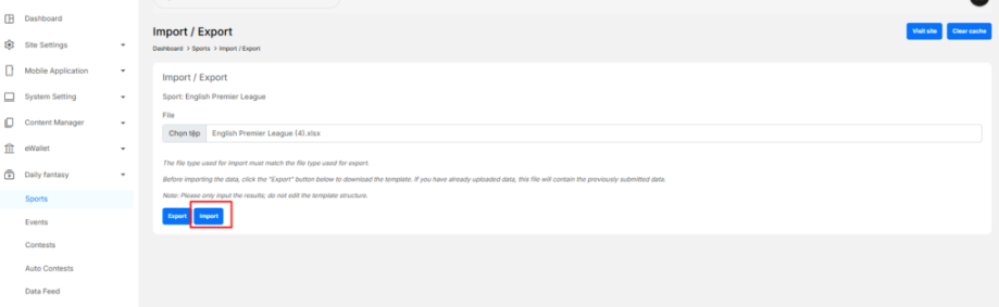 The Import / Export feature allows administrators to quickly manage sports data in bulk using Excel files. This is especially useful for setting up leagues, teams, player positions, players, and scoring categories, as well as updating results.