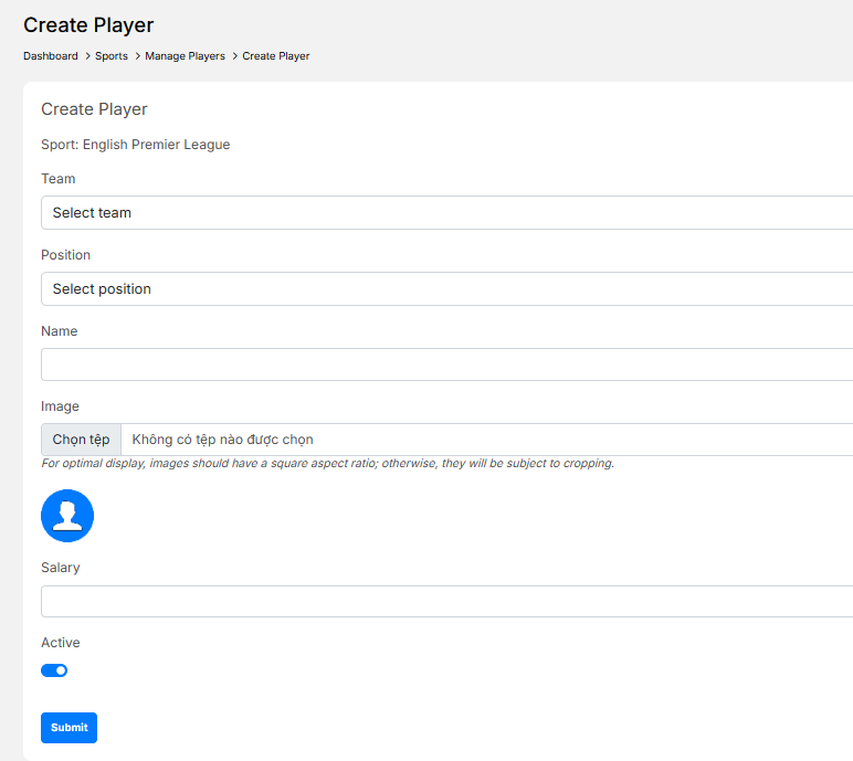 - Image: Player avatar (Recommended ratio: 1:1 (square))