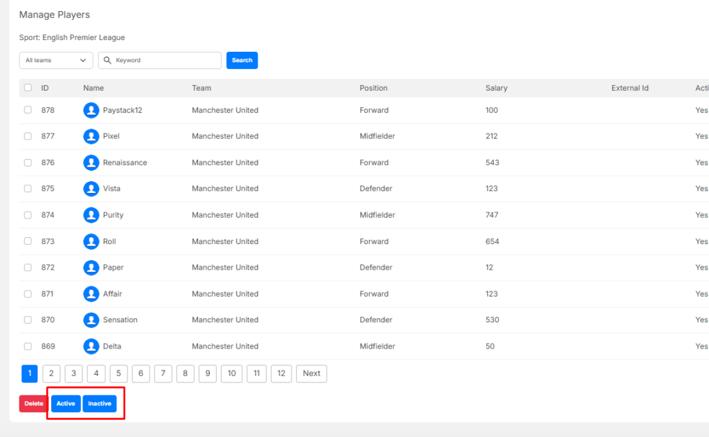 - Inactive – to disable selected players