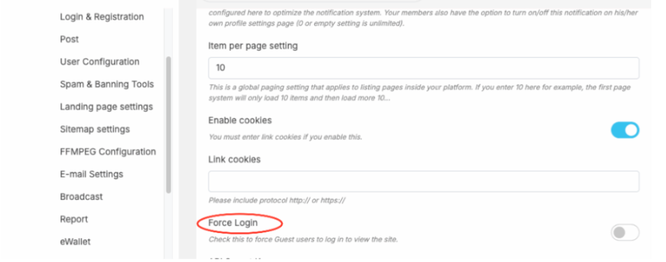 Force login: you can configure to allow users, search engine…. to access content inside your site without login by using “Force login” option at Admincp -> Site settings -> General Configuration -> Force Login . If it’s disable, content inside you site can be access without login